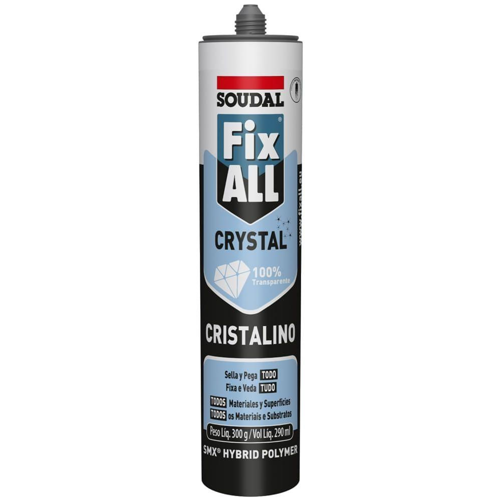 FIX ALL CRYSTAL é um selante/adesivo monocomponente, de alta qualidade, com alto poder adesivo. A base de polímeros híbridos com tecnologia MS, completamente elástico e 100% transparente contendo uma vasta gama de aplicações.