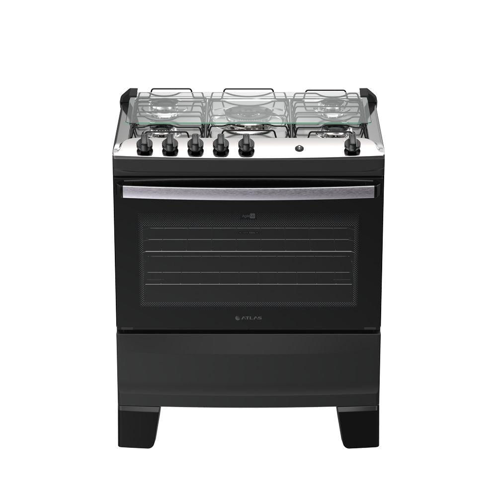 Fogão 5 bocas Atlas Agile Up Automático Mesa Inox Preto