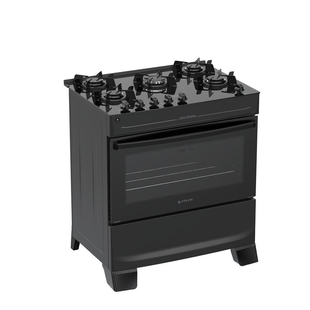 Fogão 5 Bocas Atlas Mônaco Top Glass Mesa De Vidro Bivolt Preto