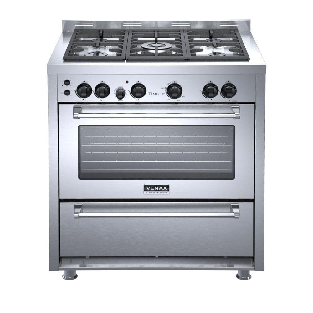 Os fogões a gás Venax Temis trazem sofisticação e praticidade com seu acendimento automático e queimadores de alta performance, permitindo que você cozinhe com mais eficiência. Sua cozinha merece mais design e qualidade!Características Principais:Produto: Fogão a Gás Venax Temis Marca: Venax Modelo: Temis Ref.: 29065 Cor: Inox Voltagem: 220V Frequência: 60Hz Classificação Energética: A Tipo: Fogão de Piso Volume do Forno: 88,3L Acendimento: Automático Queimadores: 1 Tripla chama, 1 Grande e 3 Médios Trempe dos Queimadores: Dupla em Ferro fundido esmaltada Mesa dos Queimadores: Aço Inox 304 Escovado Botões: Removíveis Válvula de Segurança: Sim Luz no Forno: Sim Prateleiras do Forno: Duas Auto Deslizantes Revestimento do Forno: Esmalte Easy Clean Temperatura: 5 posições de 180°C até 290°C Função Grill: Sim Timer Grill: Sim Timer Gás: Não Espeto Giratório: 2 Espetos Removíveis Bandeja Coletora de Resíduos: Sim Porta Removível: Sim Porta do Forno: Aço Inox 304 Escovado + Visor em vidro Vidro Duplo na Porta: Sim Puxador da Porta: Aço cromado Estufa: Móvel Puxador da Estufa: Aço cromado Entrada de Gás: Uma Entrada (Lado Esquerdo Visto de Frente) Cores das Laterais: Aço Inox 304 Escovado Alimentação: Gás GLP (A conversão para Gás Natural não é coberta pela garantia) Etiquetas: ENCE e CONPET Potência do Grill: 1250W Potência do Queimador do Forno: 3,30kW Potência Queimadores Mesa: 3,0 kW (tripla chama); 1,80 kW (Queimador Grande); 1,35 kW (Queimador Médio) Dimensões Aproximadas Internas do Forno (LxAxP): 64,8 cm x 29 cm x 47 cm Dimensões Aproximadas do Produto (LxAxP): 82 cm x 94 cm x 65 cm Peso Aproximado: 50 kg Garantia: 12 meses contra defeitos de fabricação, de acordo com as normas do fabricante.Importante: Imprescindível a conferência no ato da entrega. Em caso de anormalidade, recuse o recebimento. As imagens correspondem aos produtos apresentados, porém, são ilustrativas e podem sofrer variações de acordo com a resolução do monitor, iluminação ou percepção visual. Objetos decorativos das imagens não acompanham os produtos. Todas as informações divulgadas são de responsabilidade do fabricante, podendo sofrer alterações sem aviso prévio.
