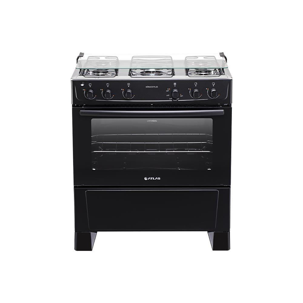 Fogão De Piso Atlas 5 Bocas Monaco Plus Mesa Inox Preto Bivolt