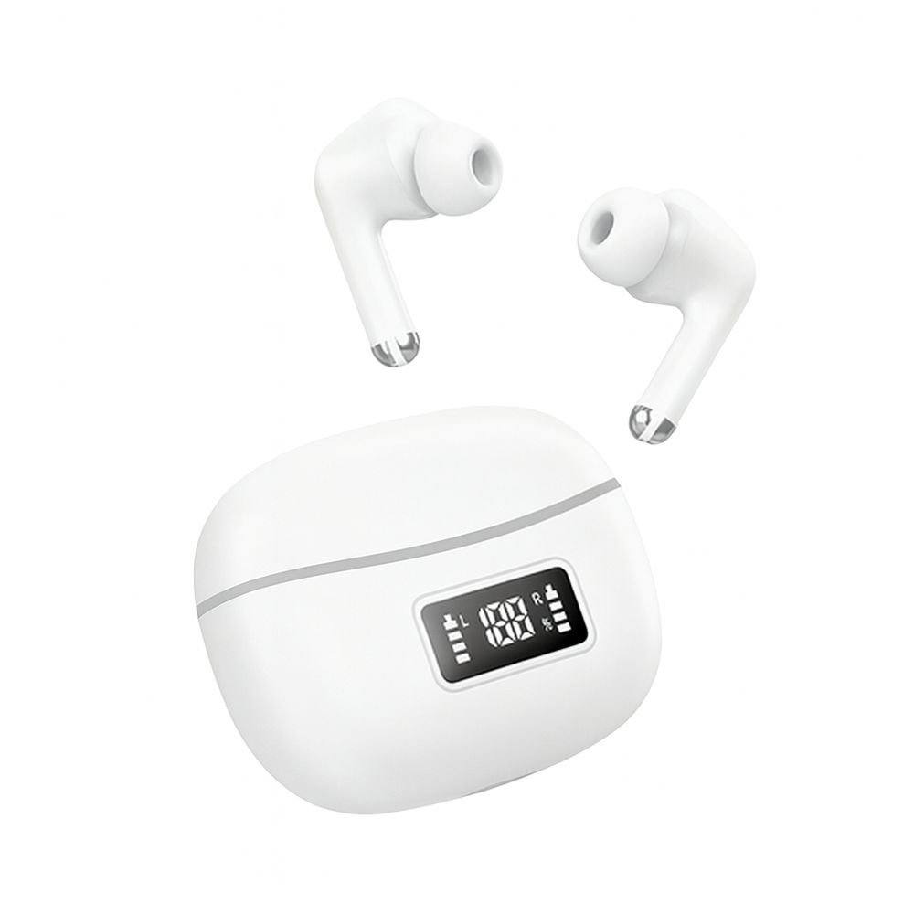 Características: Tecnologia Bluetooth 5.4: conexão rápida, estável e de baixo consumo de energia. Display digital no estojo: mostra o nível de carga de cada fone e do case em tempo real. Design ergonômico e leve: encaixe confortável que se adapta perfeitamente ao ouvido, evitando quedas durante atividades. Som estéreo de alta fidelidade: graves potentes e agudos nítidos para uma experiência sonora completa. Microfone com redução de ruído: chamadas mais claras, mesmo em ambientes com barulho. Toque sensível: controle de músicas, chamadas e assistente de voz com apenas um toque. Bateria de longa duração: até 4 horas de uso contínuo e mais de 20 horas com o estojo de carregamento. Compatibilidade universal: funciona com Android, iOS, tablets e notebooks com Bluetooth.