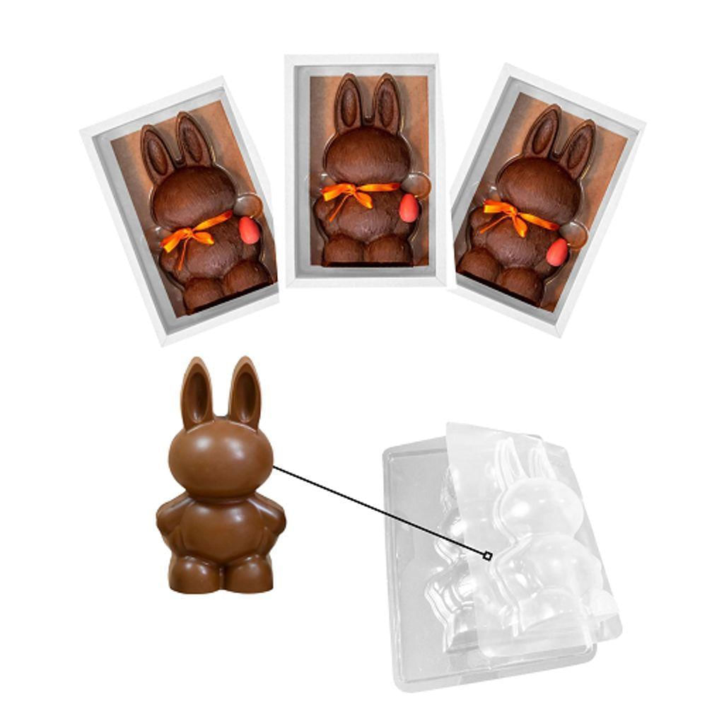 Forma Prática de Silicone para Ovo de Chocolate em forma de coelhoA Forma de Silicone Ovo Coelho Grande vem em materiais de qualidade para trazer beleza e praticidade na hora de moldar os seus Ovos de Páscoa. Ele vem com o formato de coelho de 10,2 cm de largura, 18 cm de altura e 4,3 de comprimento! Ela Acompanha duas formas de acetato (interior e exterior) e uma forma de silicone.As Formas de Silicone são uma opção mais prática no momento de utilizar e desinformar os ovos que a comum de acetato, também trazendo uma qualidade e brilho maior a casca utilizada para montar o Ovo de Páscoa para presentear a quem você mais gosta.Instruções de Uso:1 - Conjunto de 3 formasO Kit contém:- Forma Externa: onde o chocolate será colocado.- Forma ível: ajudará a desprender facilmente a forma interna.- Forma interna: define a espessura do chocolate e dá acabamento interno.2 - Preparando o chocolate: Derreta o chocolate em banho-maria ou no microondas. Depois de derretido e feito o choque térmico (temperado), o chocolate estará pronto para ser moldado.3 - Modelando: Na forma externa preencha com o chocolate é a marca indicada, bata o fundo da forma na mesa para retirar o ar. Depois coloque as duas formas encaixadas pressionando-as até o chocolate preencher totalmente cada cavidade.4 - Levando para gelar: Vire o conjunto de formas conforme o desenho e leve para gelar, até destacar a forma externa.5 - Retirando da forma: Retire a forma interna e depois com cuidado retire a forma ívelEspecificações:Conteúdo: 01 Forma de Silicone para Ovo de CoelhoDimensões do espaço para modelagem: 10,2 cm de largura, 18 cm de altura e 4,3 de comprimentoDimensões da forma inteira: 24 cm x 17 cmComposição: PET e PEDB