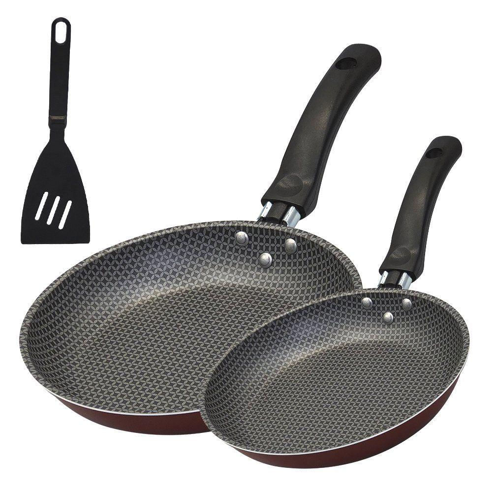 Frigideira Antiaderente Francesa 18cm E 22cm Com Espatula Vermelho Kit Com 3 Peças