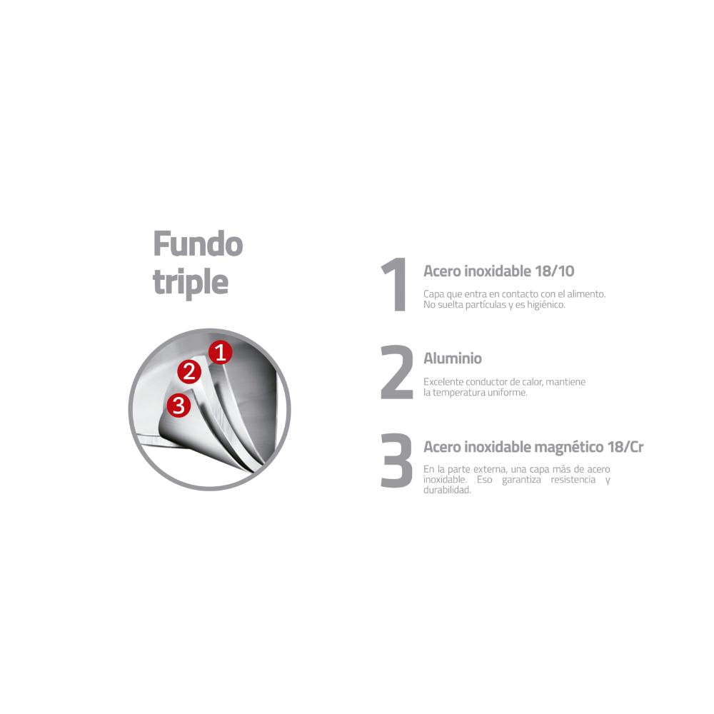 O revestimento cerâmico ajuda a manter a umidade dos alimentos, permitindo um cozimento com pouca gordura, mais rápido e eficiente. Altamente durável, mantém suas características originais, preservando a beleza, a higiene e a durabilidade do material. O fundo triplo (aço inox alumínio aço inox) distribui o calor uniformemente, proporcionando um cozimento mais rápido e uniforme, economizando energia e deixando os alimentos aquecidos por mais tempo. Fácil de limpar. Permite cozinhar com pouca gordura. Pode ser lavada diariamente na máquina de lavar louças. Pode ser utilizada nos fogões: gás, elétrico, vitrocerâmico e indução.