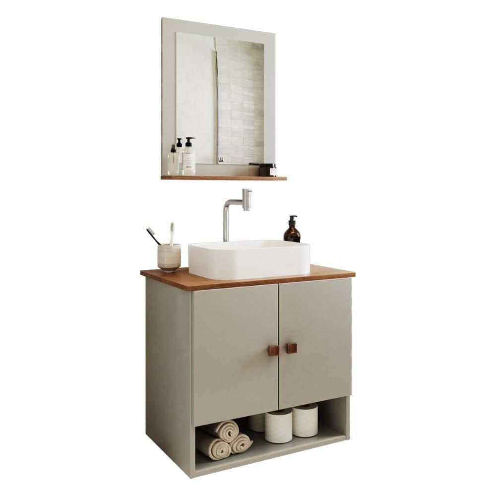Gabinete Arm Banheiro Deli 2 Portas Com Cuba Oxford Branca Off White/nature Off White/nature