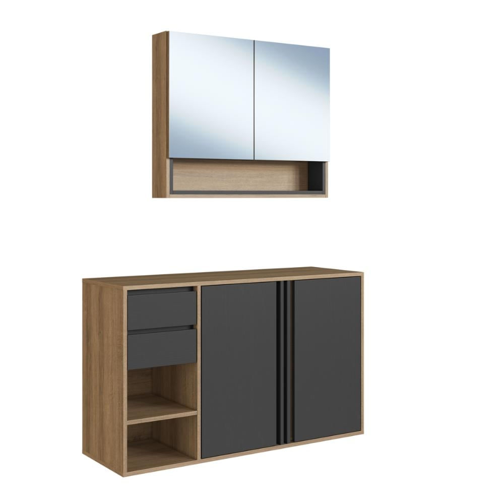 Gabinete de Banheiro 110cm Antônia com Espelheira 02 portas Mel/Grafite sem Cuba