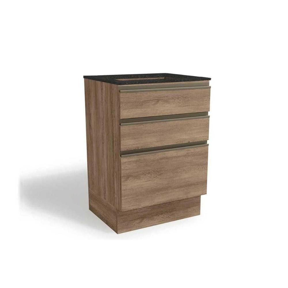 Gabinete De Cozinha Modulado Balcão Maxxi G743 P-cooktop 3 Gavetas C-tampo 60cm Nogal-preto Brilho - Kappesberg