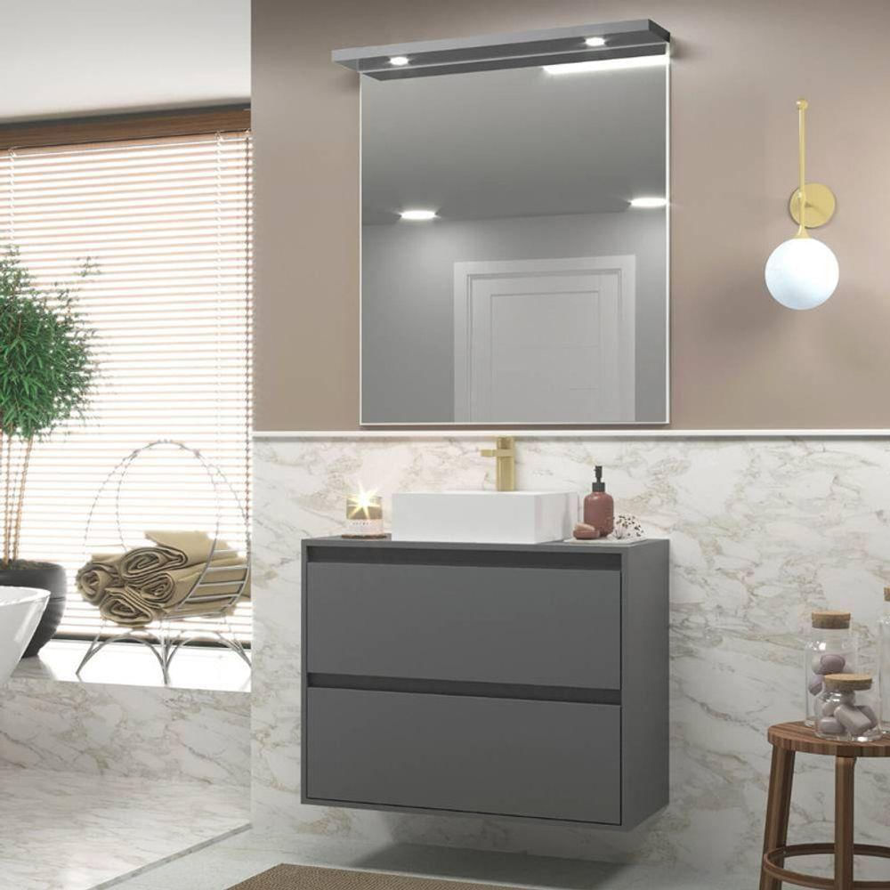 Gabinete Para Banheiro Com Cuba E Espelheira Com Led 80cm Mdf Grafite Dubai - On Móveis