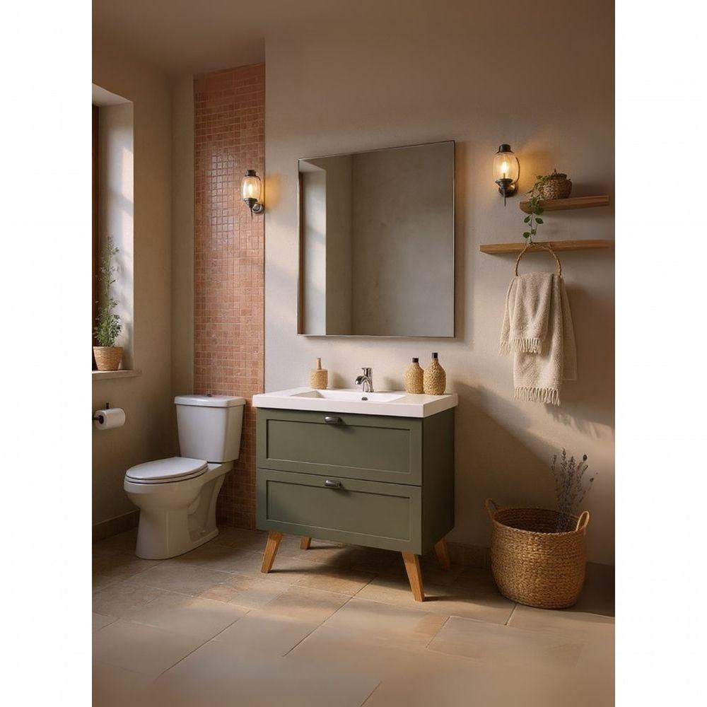 Gabinete Para Banheiro Com Cuba E Espelho 80cm Retro Mdf Verde Milano - On Móveis
