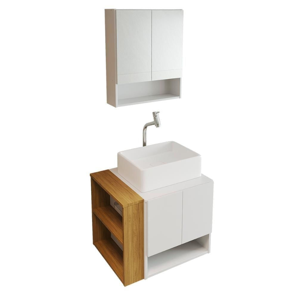Gabinete Troia Espelheira Cuba Raffinata Branca E Papeleira Branco/naturale