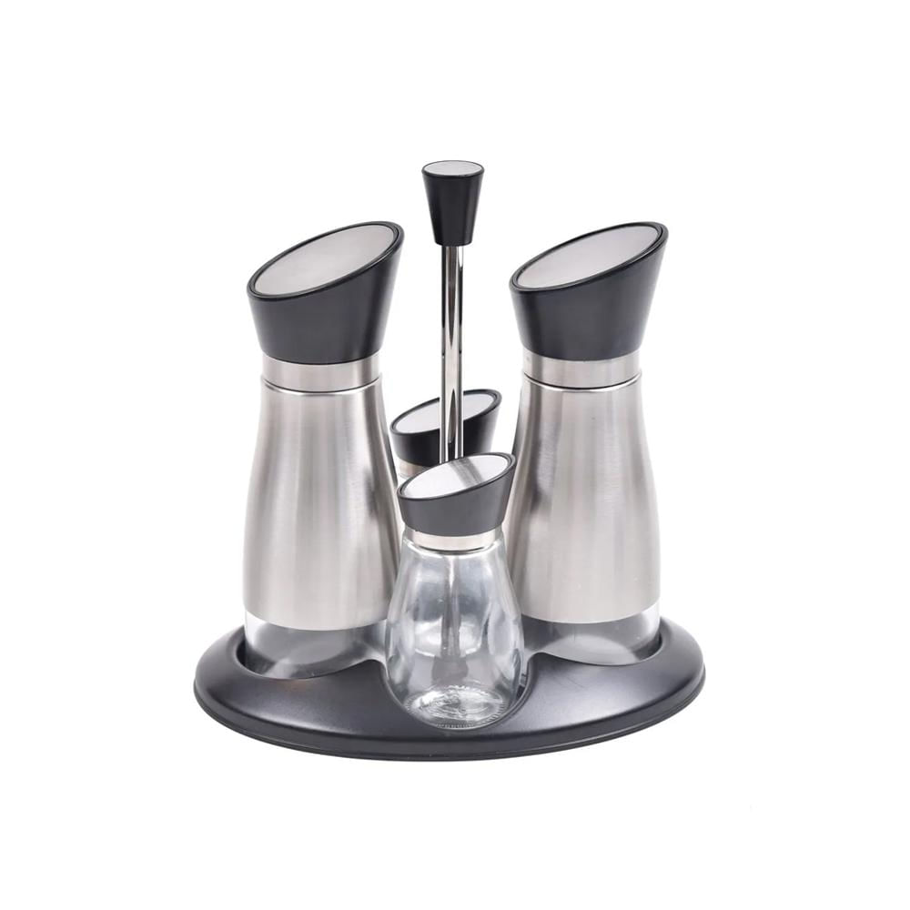 Galheteiro prático que mantém todos os condimentos essenciais organizados e ao alcance, facilitando o uso durante as refeições