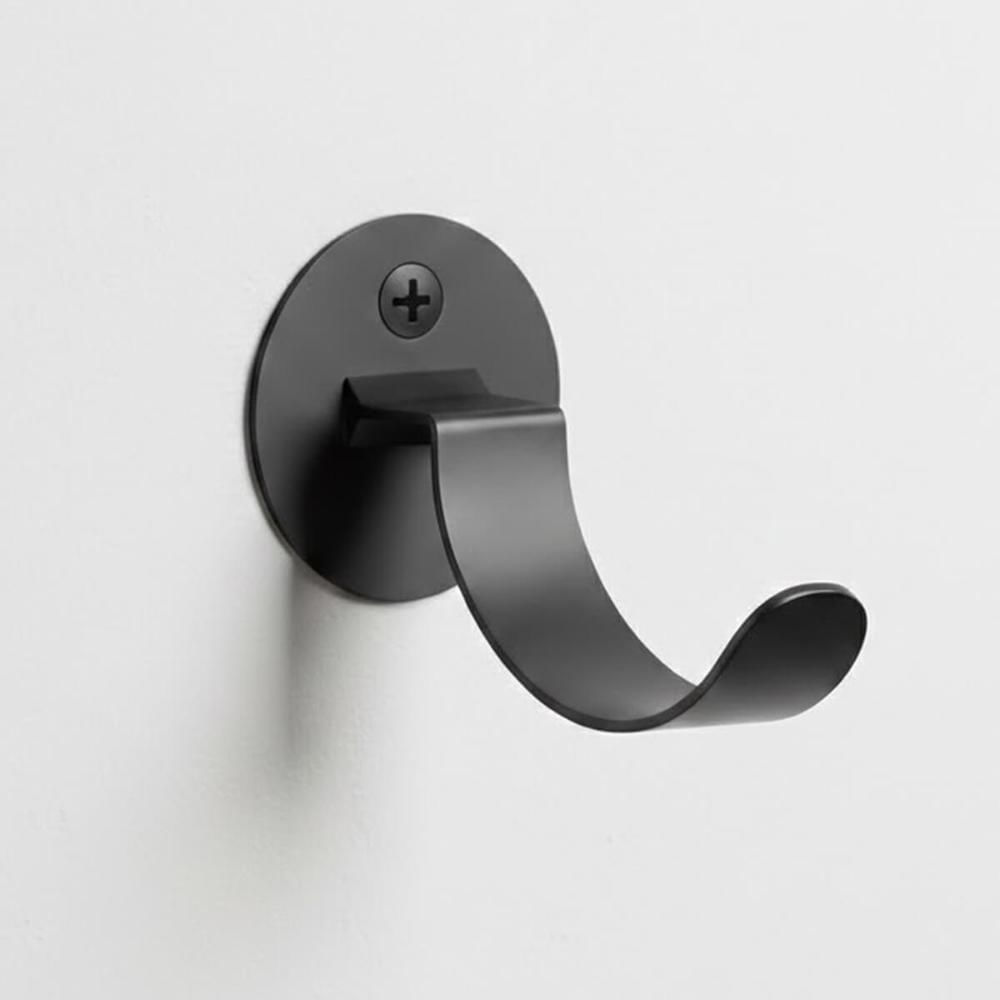 Gancho Cabideiro de Parede Preto Fosco Aço com Base Redonda Acabamento Minimalista