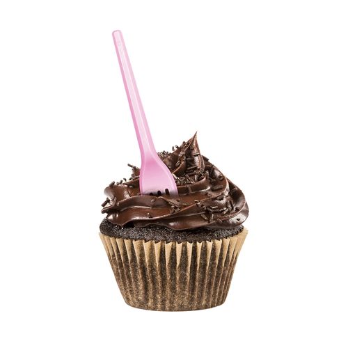 Garfo Strawplast para Sobremesa com 50 Unidades Rosa