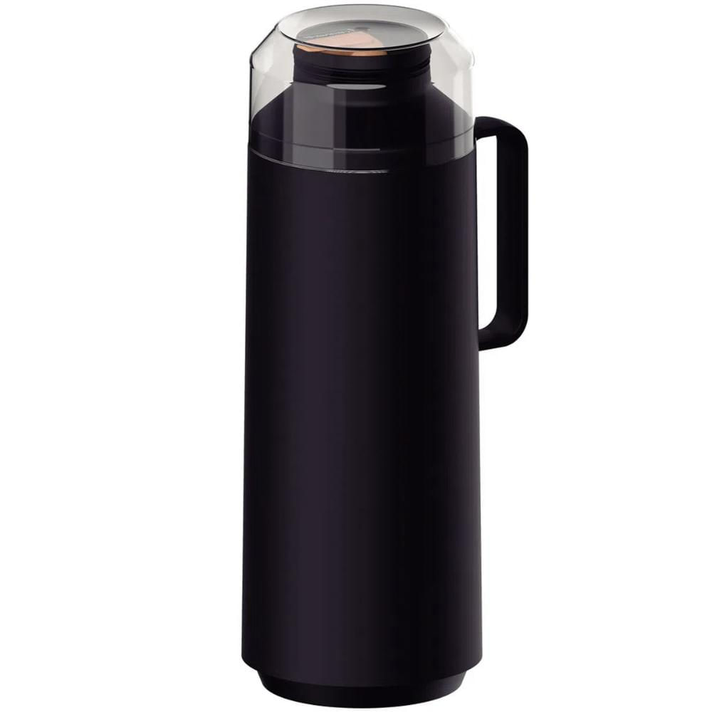 Garrafa Térmica com Sistema Corta Pingos 1L Tramontina em Plástico com Ampola de Vidro Preto.