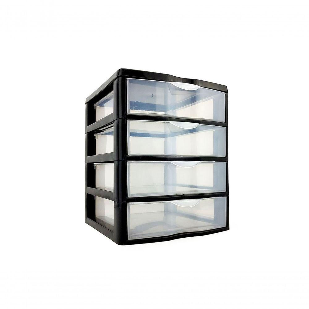 Gaveteiro de Mesa 4 Gavetas Pequeno Organizador BPA Free Modular para Escritório Preto