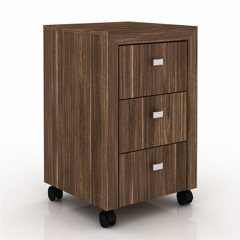 Gaveteiro para Escritório 3 Gavetas Nogal Tecno Mobili