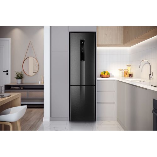A Geladeira Electrolux Frost Free Inverter 400L Efficient Rapid Freeze Inverse Black Inox Look (IB6B) foi pensada para melhorar a eficiência de conservação da comida, e a responsável é a exclusiva tecnologia AutoSense. Ela preserva de verdade os alimentos que você esqueceu na geladeira por até 30% mais tempo. Por meio da Inteligência Artificial, a geladeira reconhece os momentos em que você mais abre e fecha as portas e controla automaticamente a temperatura para manter o frescor da comida.