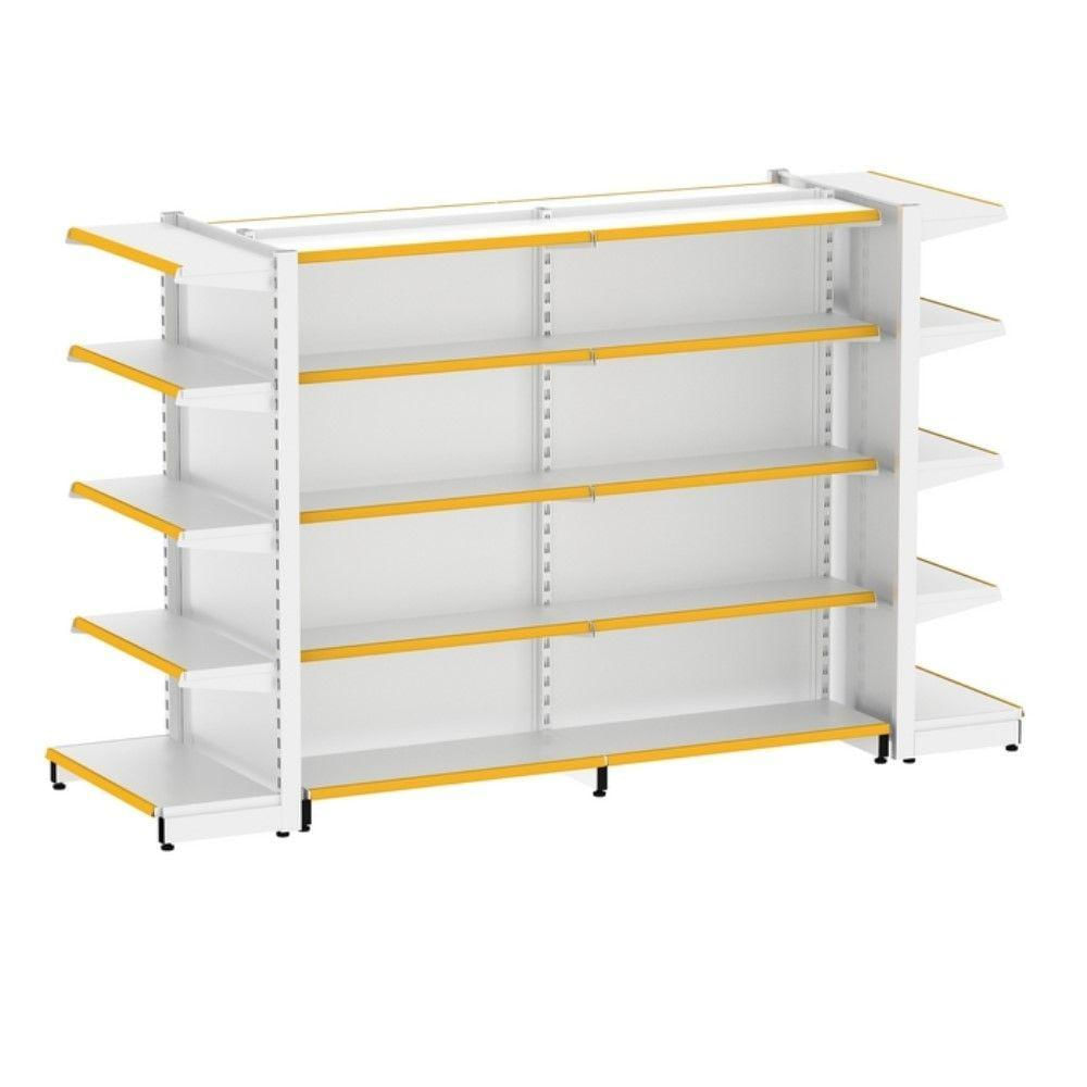 EA501 1+1+2 GONDOLA CENTRAL PRATELEIRA DUPLA FACE 1 INICIAL + 1 CONTINUAÇÃO + 2 PONTA As gôndolas ELITE AÇO proporcionam maior e melhor visibilidade dos seus produtos, aumentando seu fluxo de vendas e tornando seu negócio muito mais rentável! Perfeitas para exposição e armazenagem de produtos, são confeccionadas com pintura eletrostática epóxi anticorrosão e antiferrugem, proporcionando maior durabilidade. São compostas de aço de excelente qualidade, proporcionando maior durabilidade. São compostas de aço de excelente qualidade, oferecendo mais resistência e segurança na armazenagem das mercadorias expostas. E mais, conta com um sistema de montagem sem parafusos, tornando o produto mais "clean" e agradável visualmente, além de facilitar e agilizar sua montagem. Produto enviado desmontado, com baixíssimo custo de frete e fácil montagem, acompanha manual. CONTEÚDO DO ANÚNCIO1 Gôndola Inicial Central (8 bandejas de 30cm + 2 bases de 40cm)1 Gôndola Continuação Central (8 bandejas de 30cm + 2 bases de 40cm)2 Gôndola Ponta (4 bandejas de 30cm + 1 base de 40cm)- Todas as prateleiras acompanham porta-etiquetas na cor da imagem do anúncio. CARACTERÍSTICAS E ESPECIFICAÇÕES TÉCNICAS: