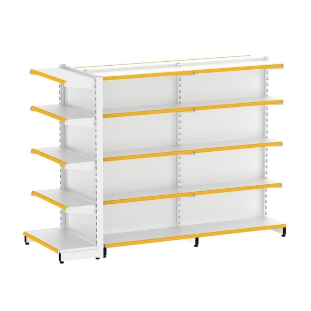 EA501 1+1+1 GONDOLA CENTRAL PRATELEIRA DUPLA FACE 1 INICIAL + 1 CONTINUAÇÃO + 1 PONTA As gôndolas ELITE AÇO proporcionam maior e melhor visibilidade dos seus produtos, aumentando seu fluxo de vendas e tornando seu negócio muito mais rentável! Perfeitas para exposição e armazenagem de produtos, são confeccionadas com pintura eletrostática epóxi anticorrosão e antiferrugem, proporcionando maior durabilidade. São compostas de aço de excelente qualidade, proporcionando maior durabilidade. São compostas de aço de excelente qualidade, oferecendo mais resistência e segurança na armazenagem das mercadorias expostas. E mais, conta com um sistema de montagem sem parafusos, tornando o produto mais "clean" e agradável visualmente, além de facilitar e agilizar sua montagem. Produto enviado desmontado, com baixíssimo custo de frete e fácil montagem, acompanha manual. CONTEÚDO DO ANÚNCIO1 Gôndola Inicial Central (8 bandejas de 30cm + 2 bases de 40cm)1 Gôndola Continuação Central (8 bandejas de 30cm + 2 bases de 40cm)1 Gôndola Ponta (4 bandejas de 30cm + 1 base de 40cm)- Todas as prateleiras acompanham porta-etiquetas na cor da imagem do anúncio. CARACTERÍSTICAS E ESPECIFICAÇÕES TÉCNICAS: