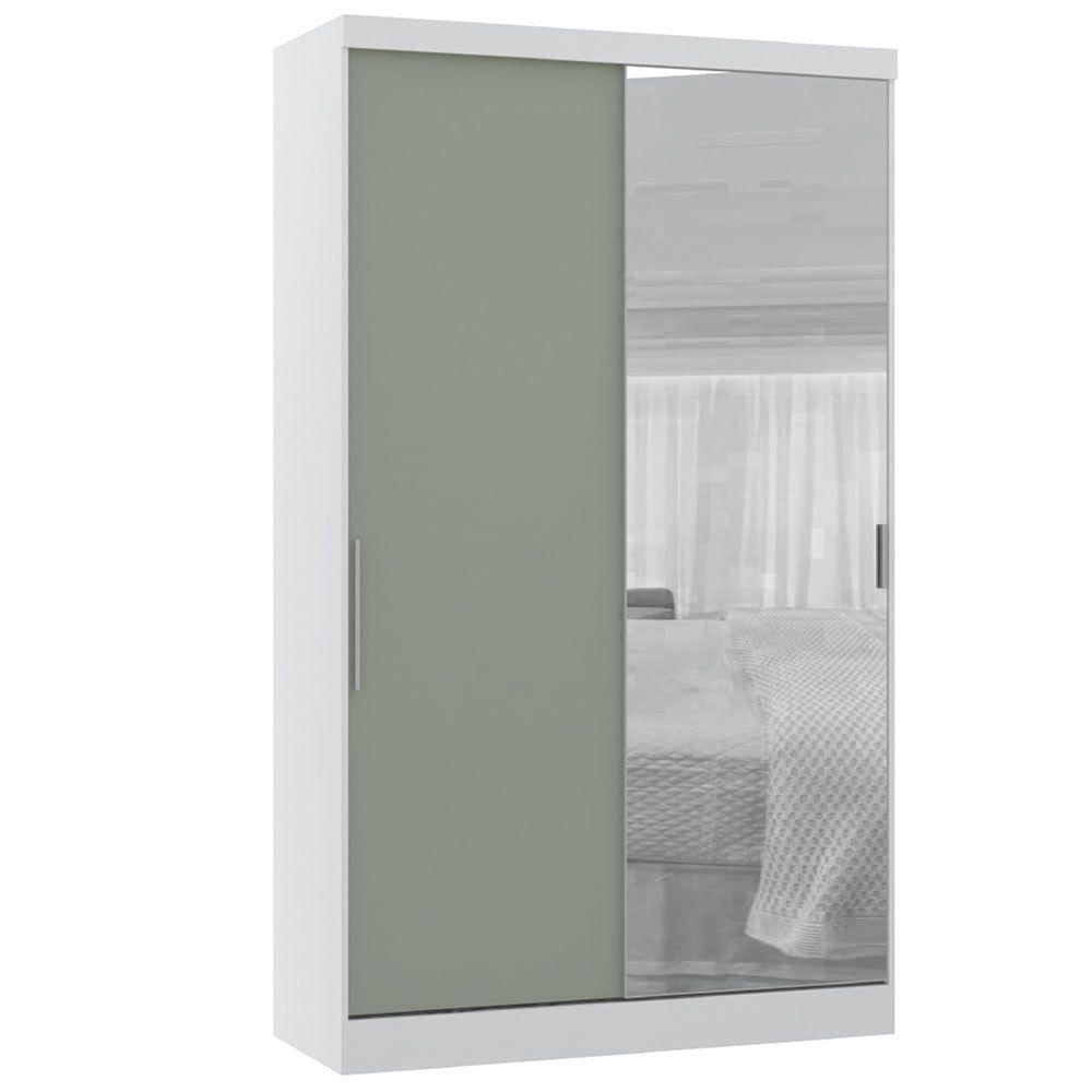 Gr 134,5cm 2 Pts De Correr Com Espelho Alpes Luciane Móveis Branco Com Verde