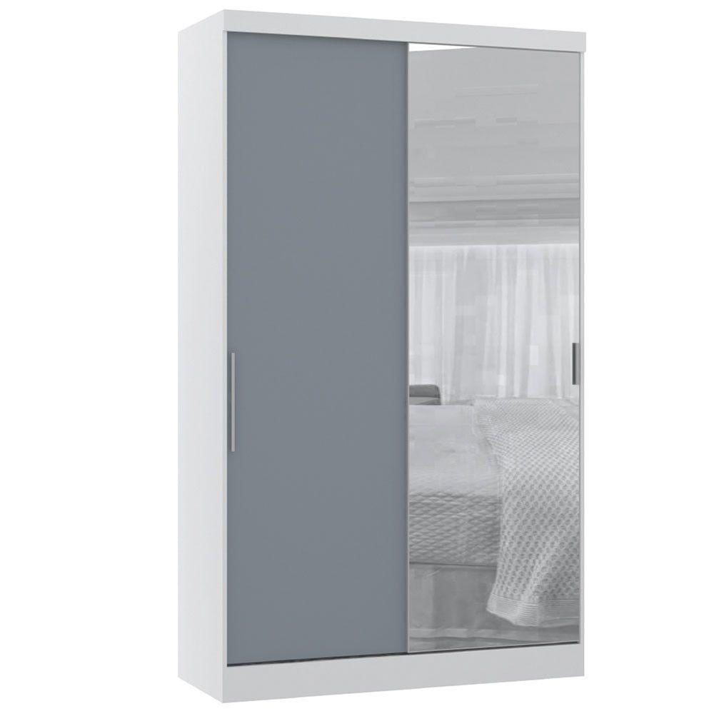 Guarda Roupa 134,5cm 2 Portas De Correr Com Espelho Alpes Luciane Móveis Branco Pf-grey Sky Pf