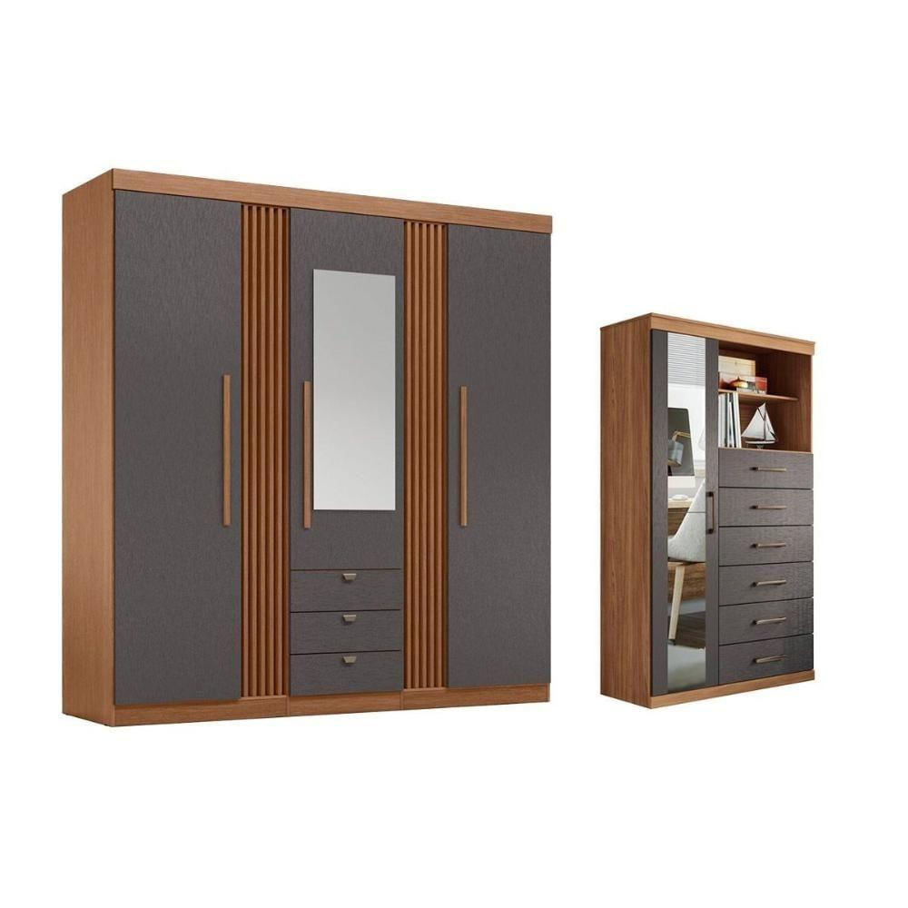 Guarda Roupa 2 Peças (1guardaroupa+1cômoda) Qc248 Jatobá/grafite - Santos Andirá