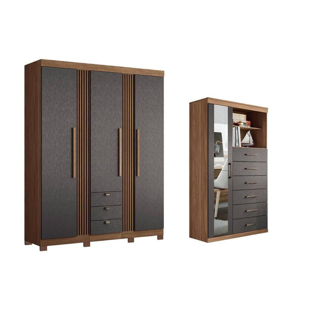 Guarda Roupa 2 Peças (1guardaroupa+1cômoda) Qc256 Jatobá/grafite - Santos Andirá