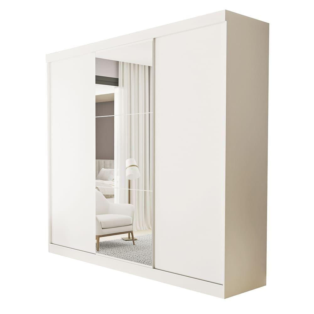 Guarda Roupa 3 Portas De Correr Com Espelho Central 4 Gavetas Barcelona Minastex Branco