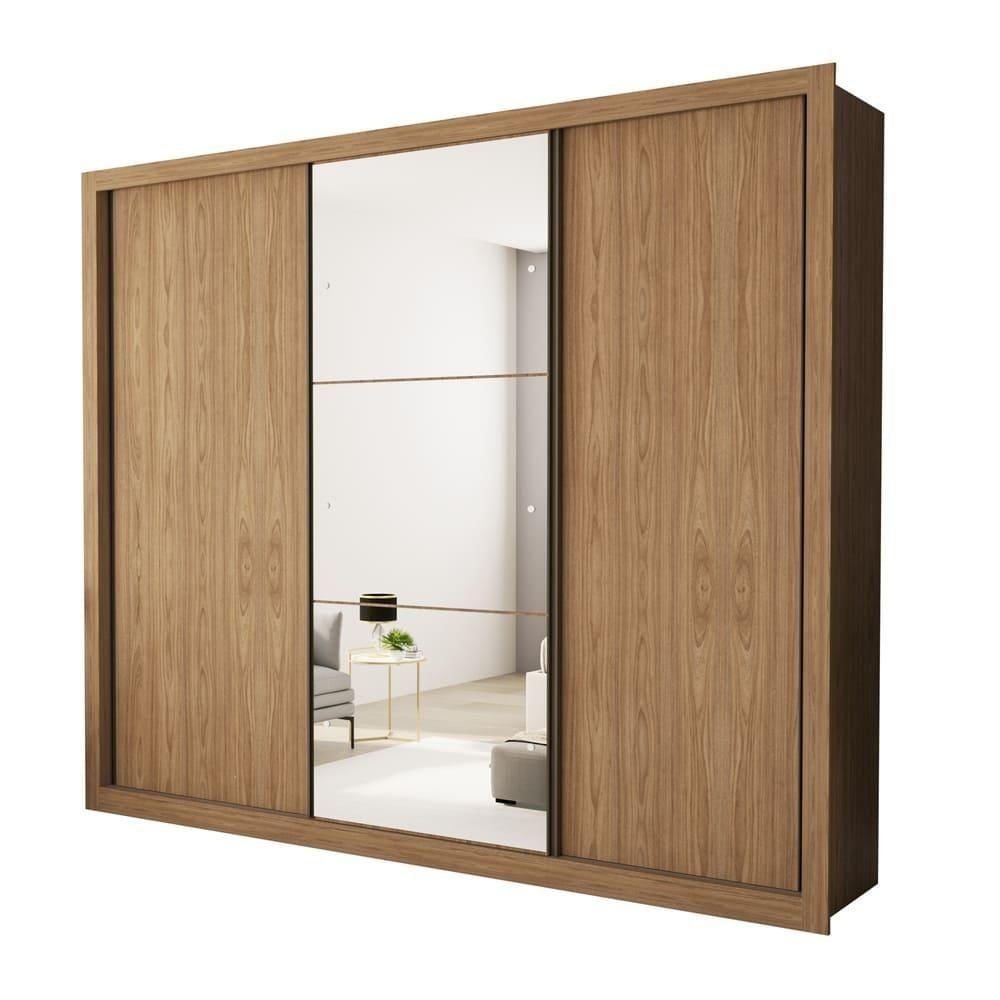 Guarda Roupa 3 Portas De Correr Com Espelho Central 6 Gavetas Nápoli Minastex Carvalho