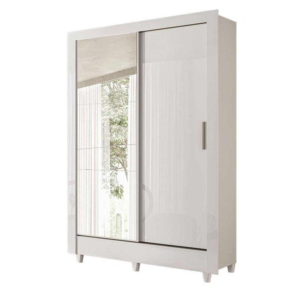 Guarda Roupa Belgica 2 Portas De Correr Com Espelho Branco Brilho - Santos Andirá