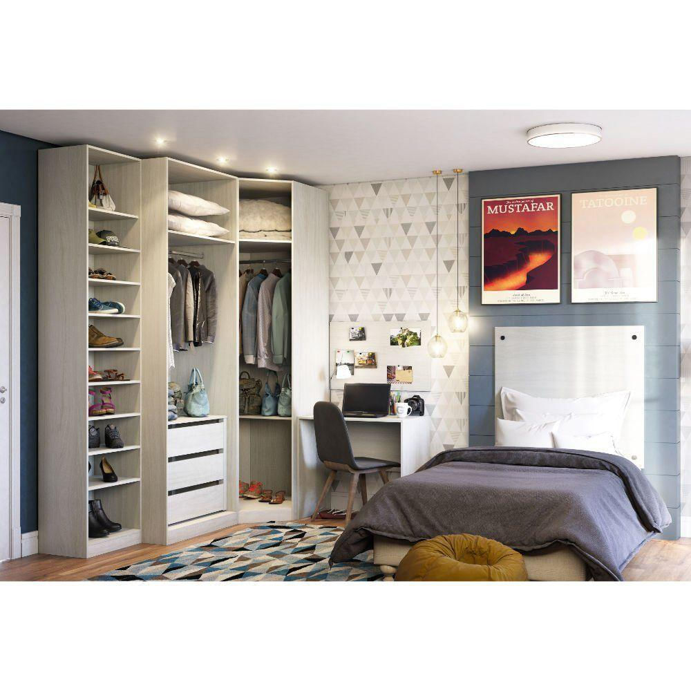 Guarda Roupa Canto Closet Sem Portas 5 Peças, Cabeceira Solteiro E Escrivaninha Prime Luciane Móveis Legno Crema