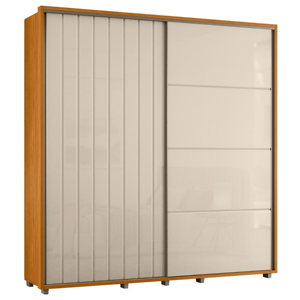 Características do Produto Material da Estrutura: 100% MDF. Material do Fundo: MDF 3mm. Estrutura das Chapas: 15mm/25mm. Peso Suportado: 132 kg Distribuídos. Acabamento: Pintura UV. Escala de Brilho: Fosco/Brilho. Quantidade de Portas: 2 Portas. Tipo de Porta: Deslizantes. Possui Cabideiro: Sim. Quantidade de Cabideiros: 6 Cabideiros. Material dos Cabideiros: Alumínio. Possui Gaveta: Sim. Quantidade de Gavetas: 4 Gavetas. Tipo de Corrediças: Telescópicas. Possui Puxador: Sim. Material do Puxador: Alumínio. Possui Prateleiras: Sim. Quantidade de Prateleiras: 6 Prateleiras. Possui Pés: Sim. Material dos Pés: Poliestireno. Possui Espelho: Não. Diferenciais: - Moldura de 25mm. - Perfis metálicos antiempenamento. - Perfis metálicos. - Cabideiros retráteis, com pistão a gás. - Corrediças telescópicas. - Puxadores em alumínio. - Portas com detalhe ripado. Sistema de Montagem: Minifix / Cavilhas / Parafusos. Manual de Montagem: Sim. Complexidade da Montagem: Alta. Volumes: 6 Volumes. Conteúdo da embalagem: 1 Guarda Roupa. Garantia do Fabricante: 90 dias contra defeito de fabricação. Montagem: Recomendamos que seja feita por um profissional. Recomendação de Limpeza: Utilize pano levemente úmido.