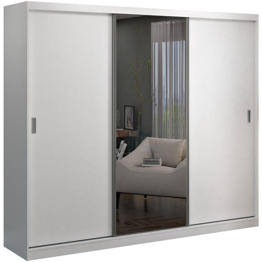 Guarda Roupa Casal 264cm 3 Portas De Correr 1 Espelho Winter F04 Branco - Mpozenato