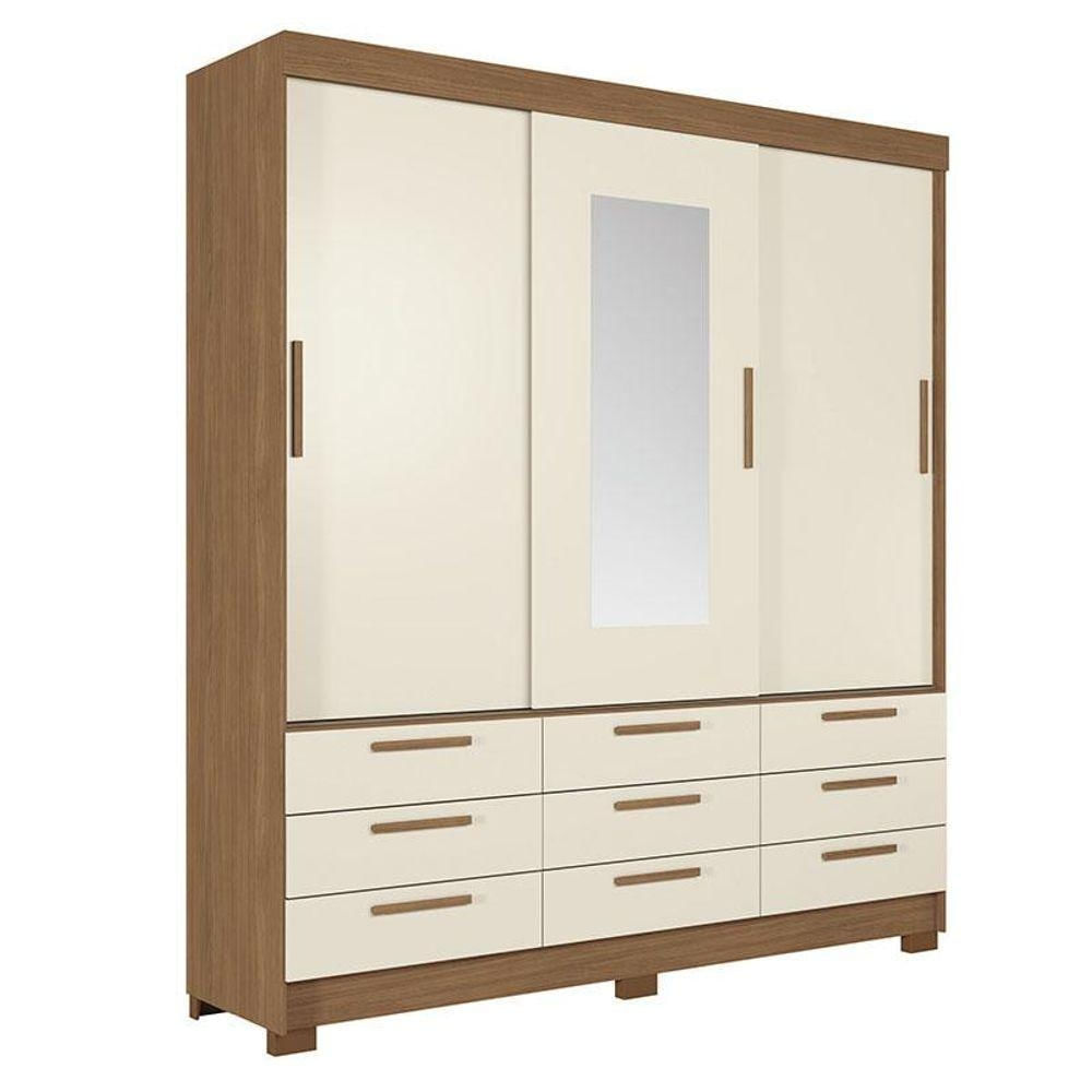 Guarda Roupa Casal 3 Portas De Correr 9 Gavetas Morretes Com Espelho Jatobá Areia - Santos Andirá