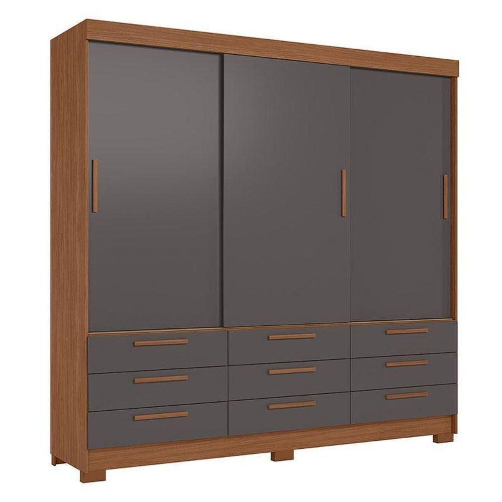 Guarda Roupa Casal 3 portas de correr 9 gavetas Morretes Jatobá Grafite - Santos Andirá Guarda Roupa Casal 3 portas de correr 9 gavetas Morretes Jatobá Grafite: Quer muito espaço em um guarda-roupa compacto? O Morretes 3.9 traz nove gavetas e prateleiras internas para organizar a casa inteira, além de portas que deslizam com freios. Uma solução elegante e muito funcional. Características técnicas: - Desenvolvida em MDP - Pintura em Verniz Fosco - 09 Gavetas externas com corrediças telescópicas - Puxadores em MDF revestidos - 02 Cabideiros/calceiros em aluminio - Pés em PVC - 04 Amplas prateleiras - Amplo maleiro - Portas de correr com trilho metálico
