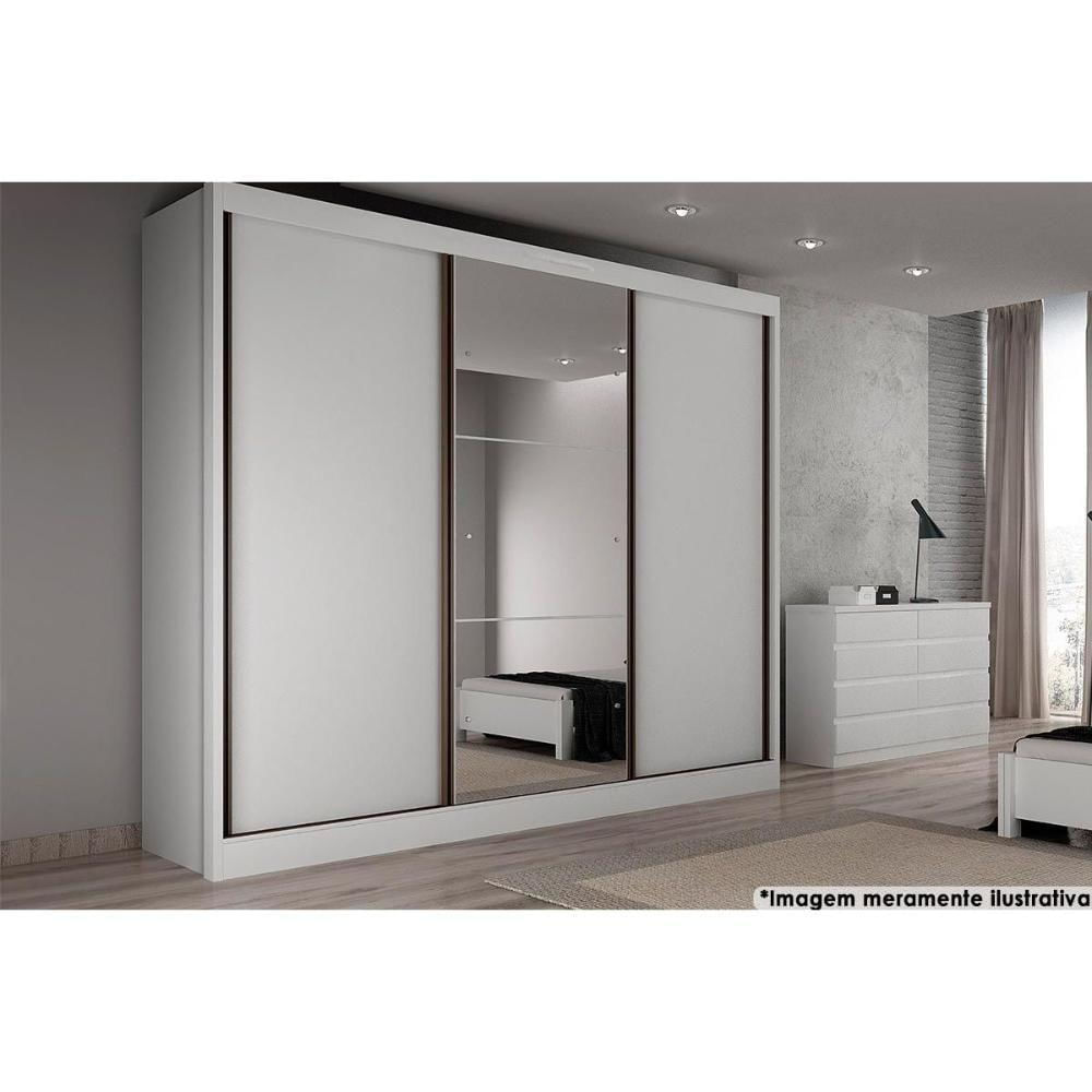 Guarda Roupa Casal 3 Portas De Correr E 6 Gavetas C/ Espelho Natus Branco - Novo Horizonte