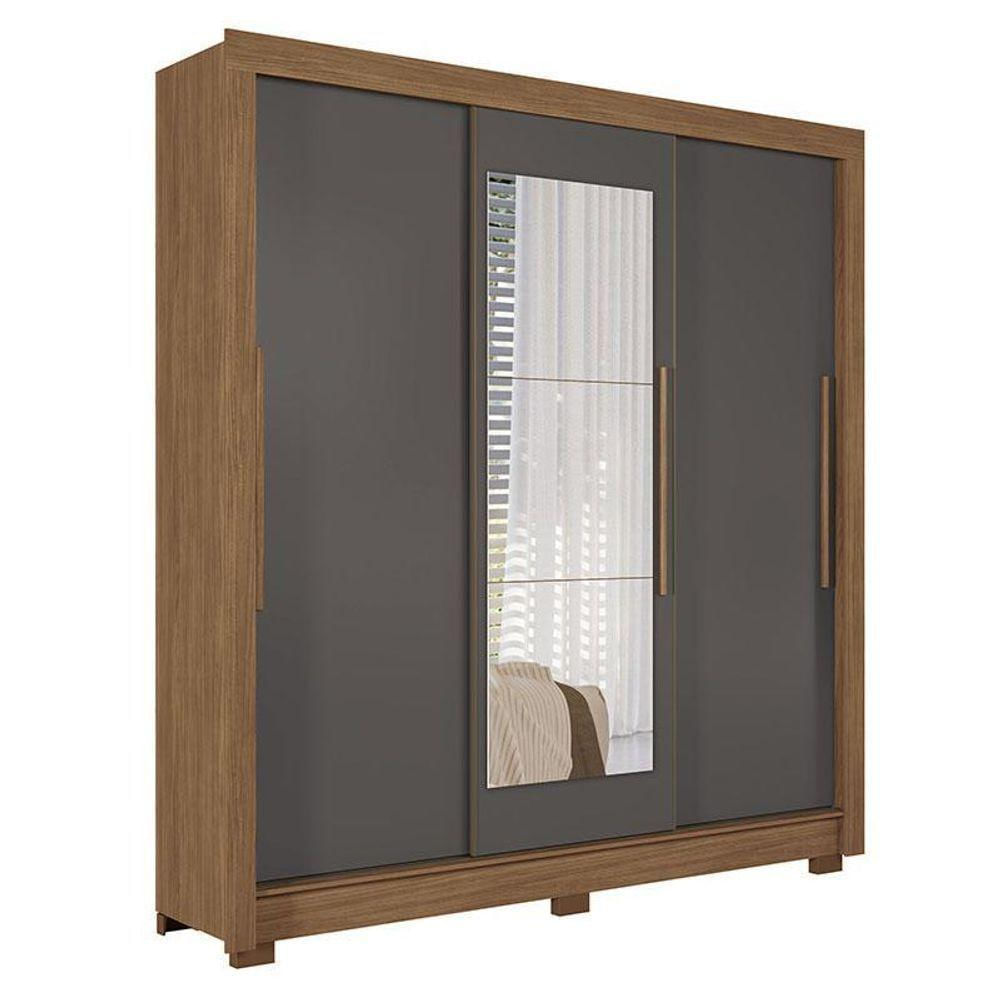 Guarda Roupa Casal 3 Portas De Correr Maringá Com Espelho Jatobá Grafite - Santos Andirá