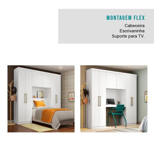 O Guarda-Roupa Porto é um produto chave para diferentes necessidades, já que sua peça central pode ser montada de diversas formas, como: painel de TV, mesa de escrivaninha ou cabeceira de cama de solteiro.