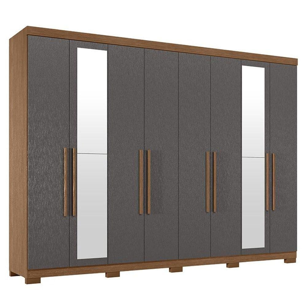 Guarda Roupa Casal 8 Portas 4 Gavetas Master New Com Espelho E Pés Jatobá Grafite Acetinado - Santos Andirá