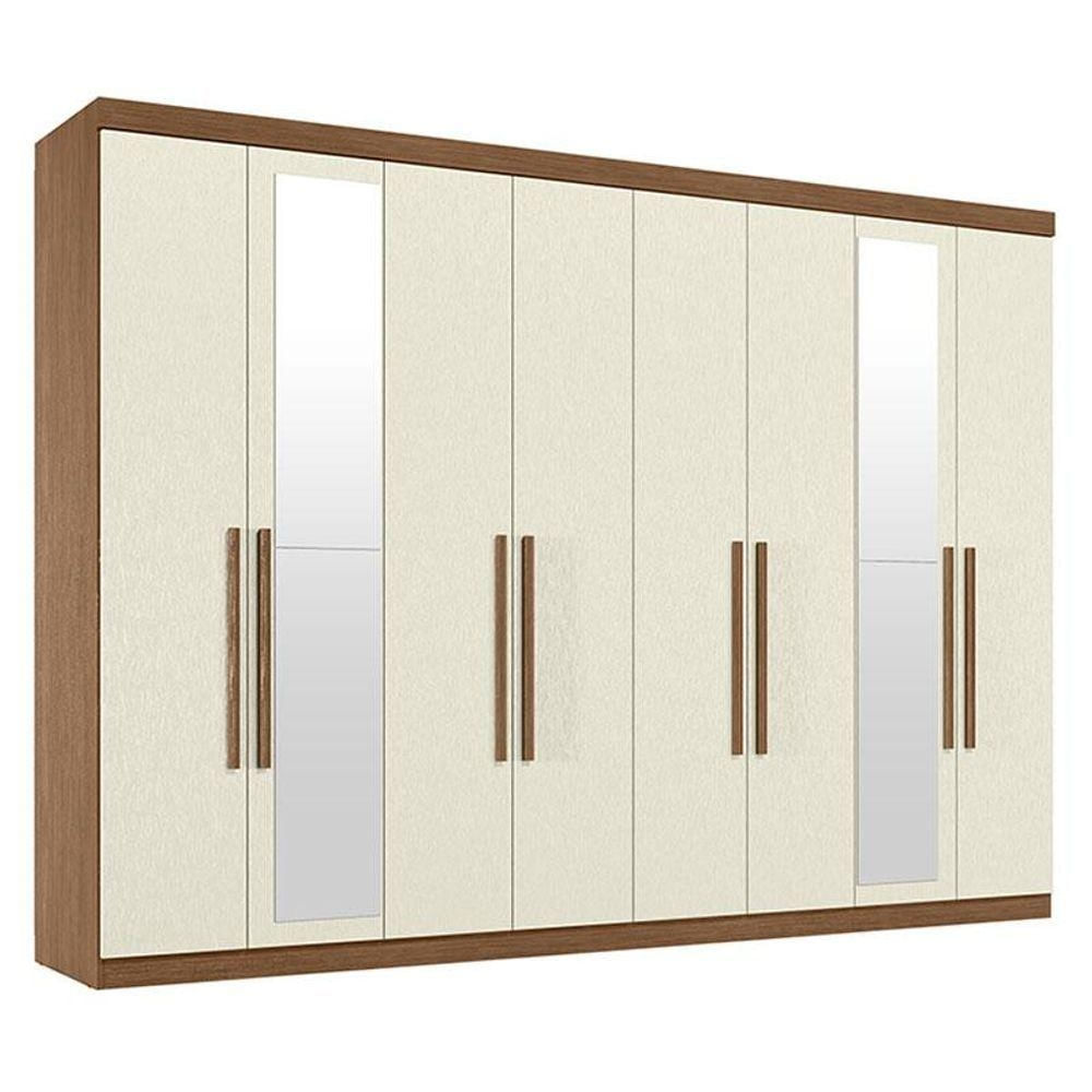 Guarda Roupa Casal 8 Portas 4 Gavetas Master New Com Espelho Jatobá Areia Acetinado - Santos Andirá