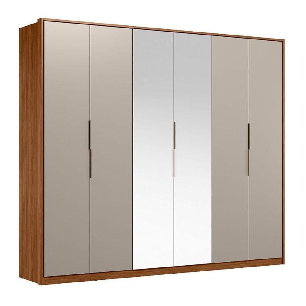 Guarda Roupa Casal Atrice D66012k 6 Portas Nogueira Nude Prime Tx Com Espelho Demóbile - Demartêz