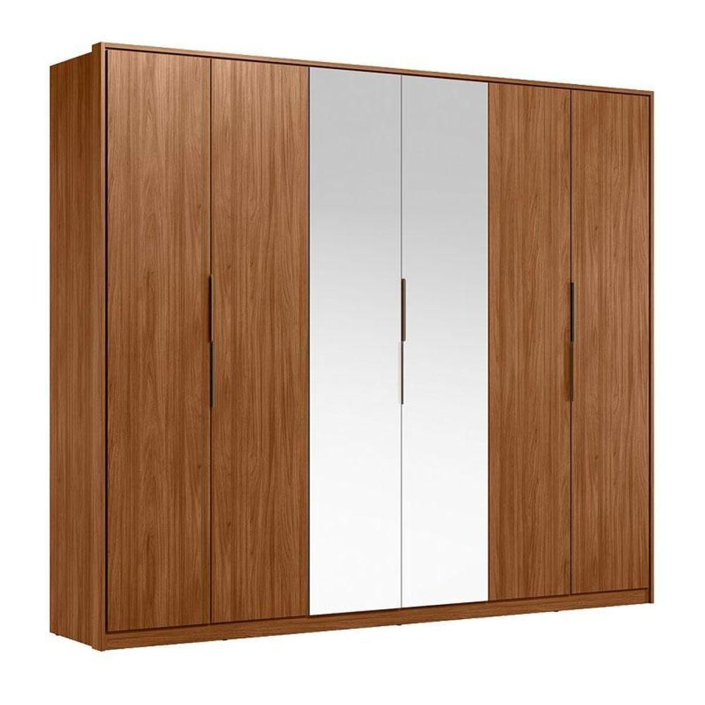 Guarda Roupa Casal Atrice D66012k 6 Portas Nogueira Touch Com Espelho Demóbile - Demartêz