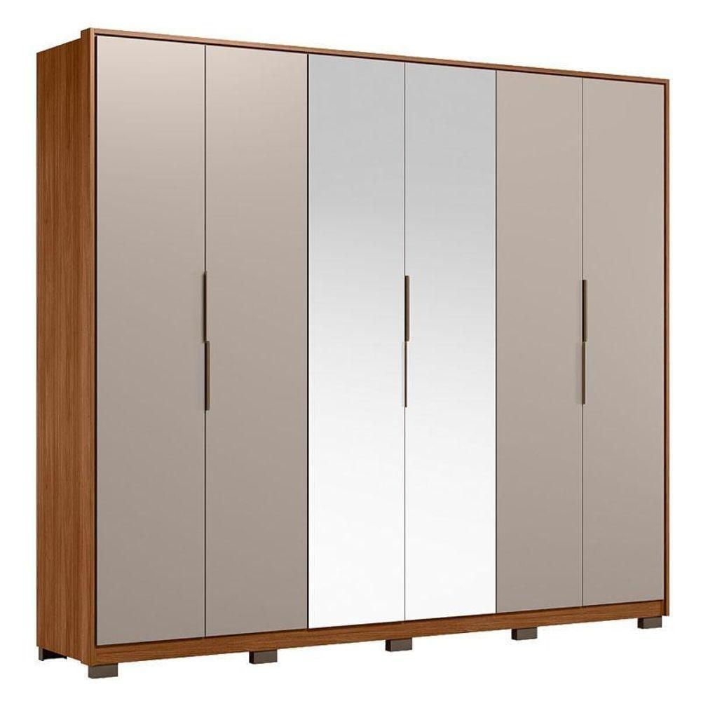 Guarda Roupa Casal Atrice D66012kpe 6 Portas Nogueira Nude Prime Tx Com Espelho E Pés Demóbile – Demartêz