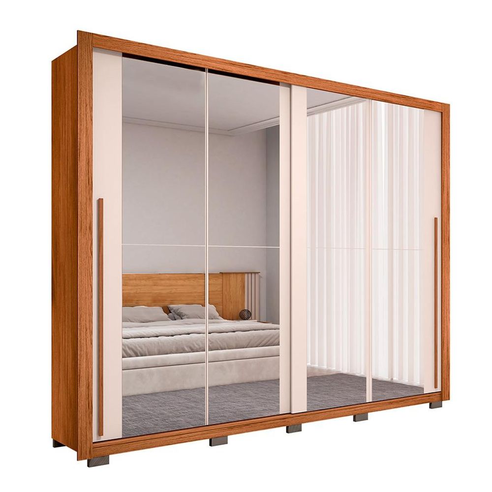 Guarda-Roupa Casal com 4 Espelhos Praticus 2 PT 4 GV Freijó e Off White