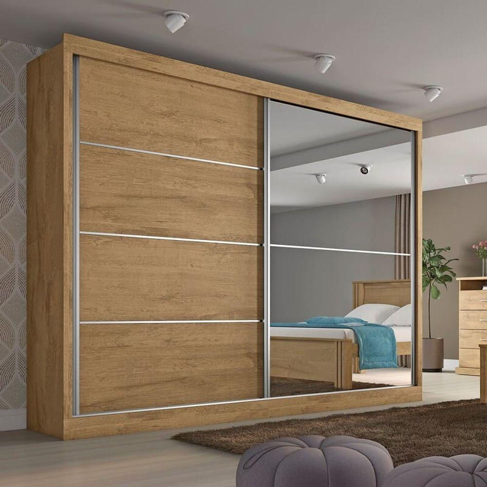Guarda Roupa Casal Com Espelho 2 Portas 4 Gavetas Verona-amêndoa Made Marcs