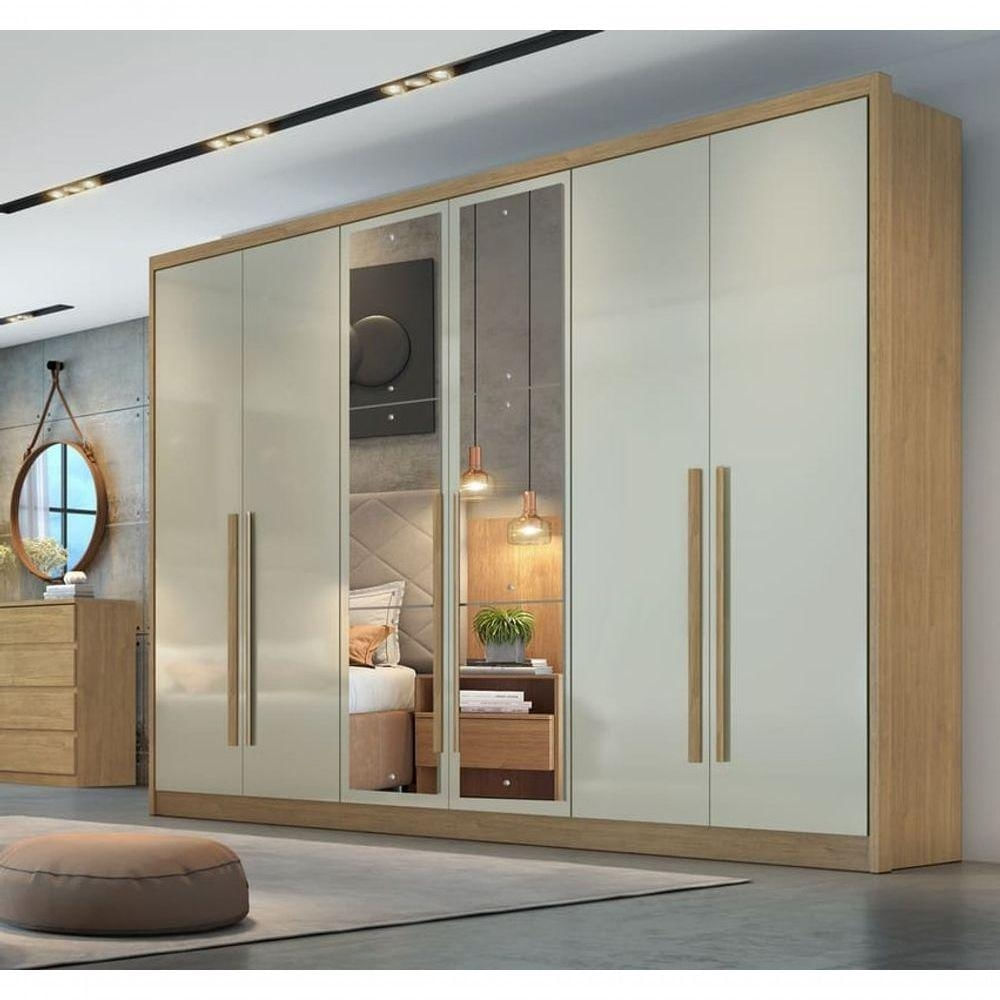 Guarda Roupa Casal Com Espelho 6 Portas 6 Gavetas - Livorno-cumaru/fendi - Móveis Novo Horizonte