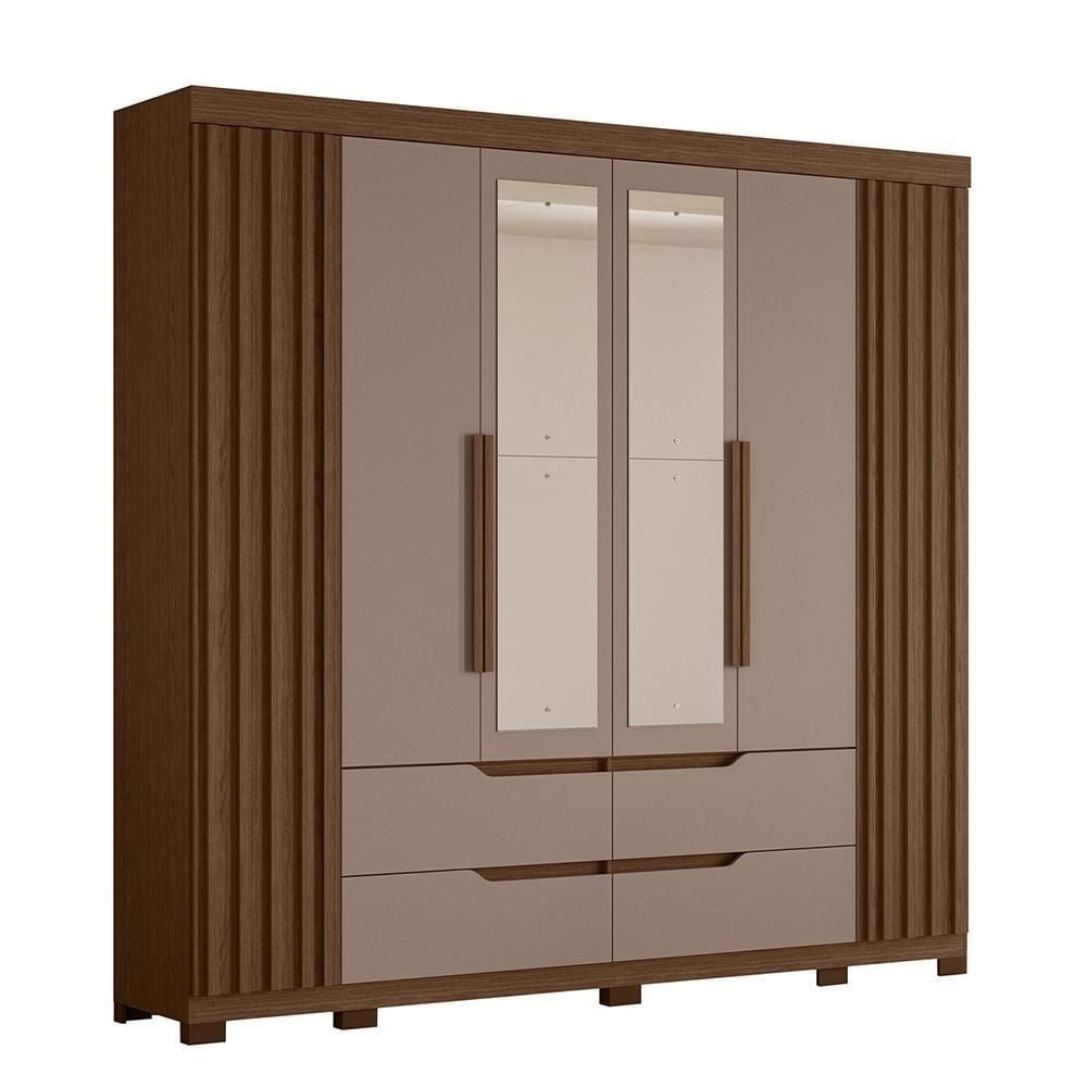 Guarda Roupa Casal Doble 4 Portas E 4 Gavetas Com Espelho Nogueira-capuccino - Móveis Albatroz