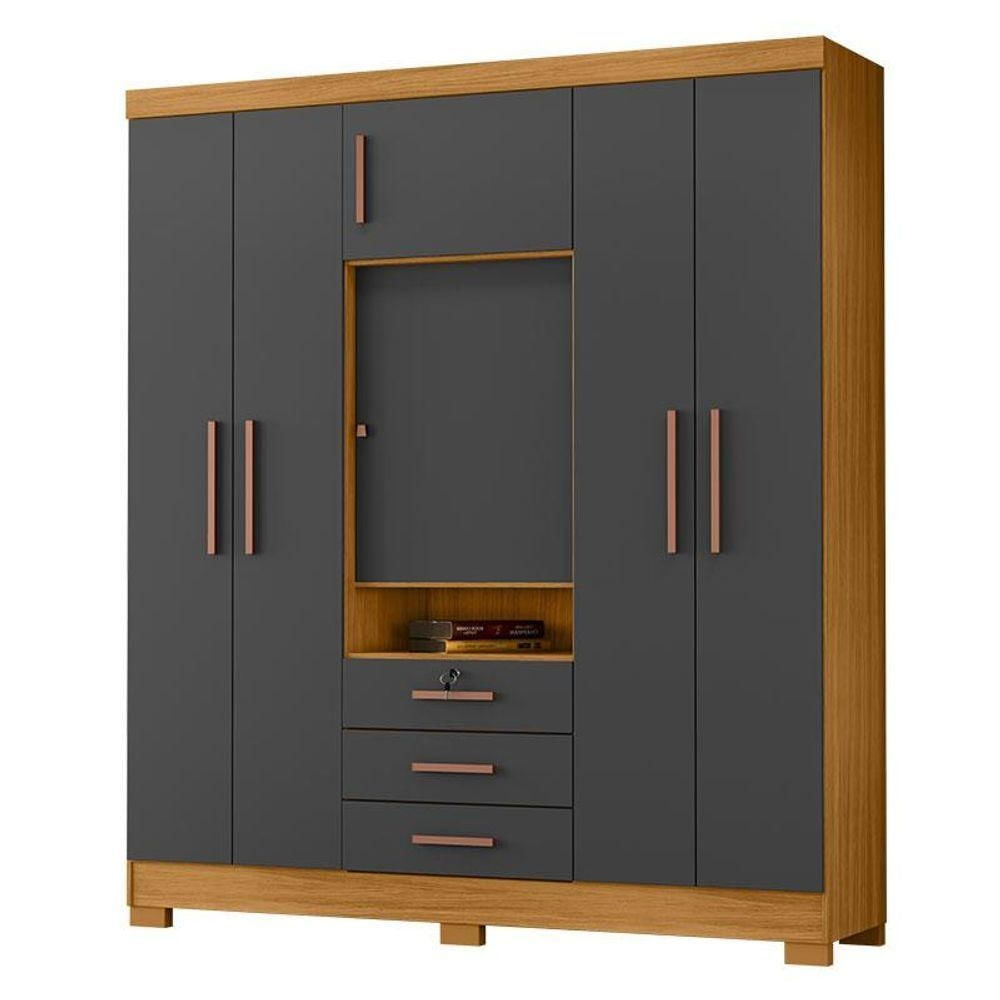 Guarda Roupa Casal Imperial Carvalho Americano Grafite - Incorplac