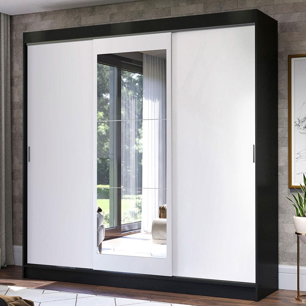 Guarda-Roupa Casal Madesa Istambul 3 Portas de Correr com Espelho 3 Gavetas - Preto/Branco Preto/Branco